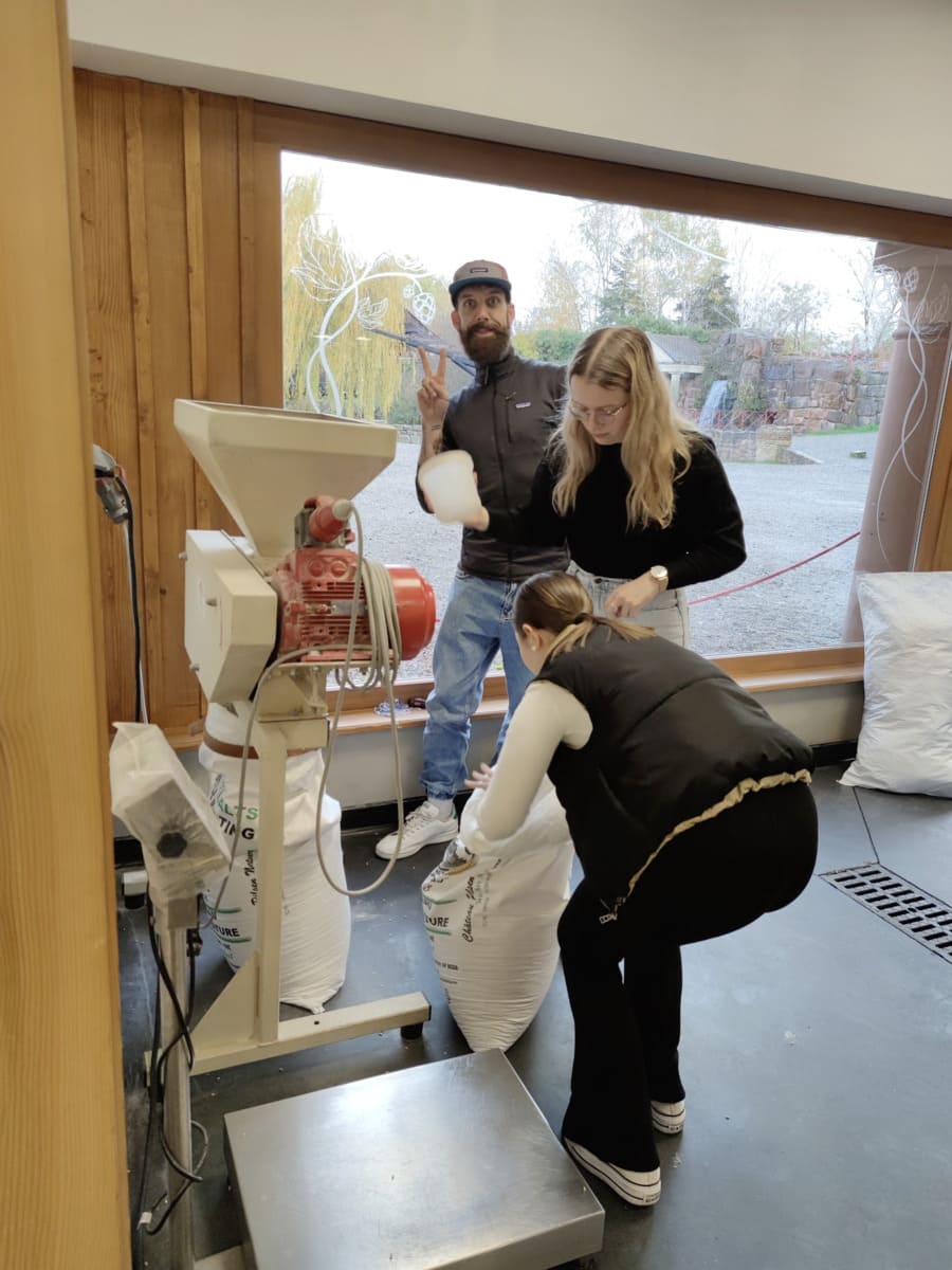 Puis vient ensuite le moment de peser les céréales et de concasser.